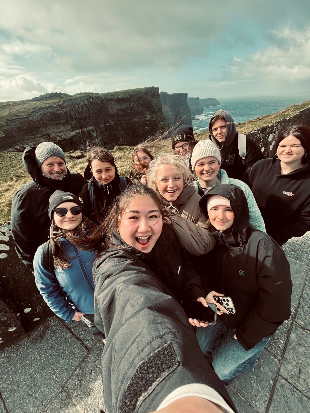 Einen langen Tagesauflug an die Westküste Irlands: Cliffs of Moher, Wild Atlantic Way, The Burren und Galway. An den einzelnen Stationen informierten ausgewählte Schülerinnen die Klasse über die Besonderheiten der verschiedenen Ziele.