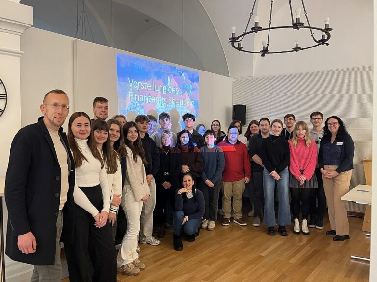 Auf Einladung der Ausbildungsleiterin des Finanzamts Straubing, Frau Christine Kerscher besuchte die Fachklasse für Steuerfachangestellte der Mathias-von-Flurl-Schule mit Klassenleiter OStR Michael Hien das Straubinger Finanzamt. Im Rahmen des im Jahre 2023 neugeordneten Lehrplans ist ein Überblick über Aufbau und Arbeit der Finanzverwaltung im Lernfeld 1 vorgesehen. Diesen Überblick verschafften sich die angehenden Steuerfachangestellten bei einem Besuch im Straubinger Finanzamt.