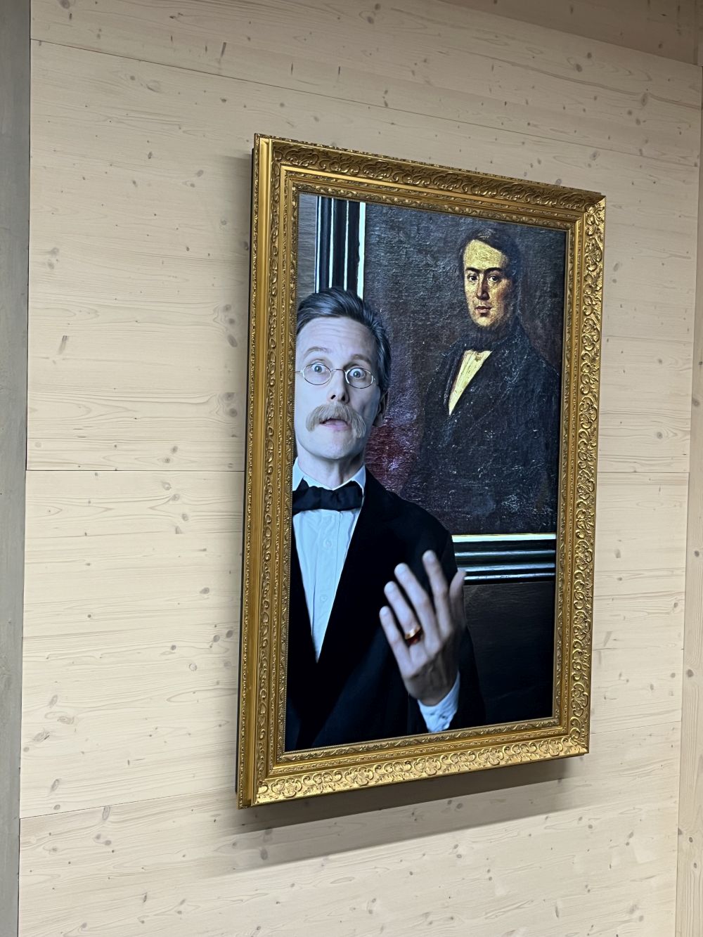 Die Freunde und Förderer der Mathias-von-Flurl-Schule bei ihrem Rundgang durch die Doku-Schau „Medien im Wandel der Zeit“. Dieser Rundgang wird vom Gründer des Straubinger Tagblatts, Clemens Attenkofer, „persönlich“ durchgeführt.