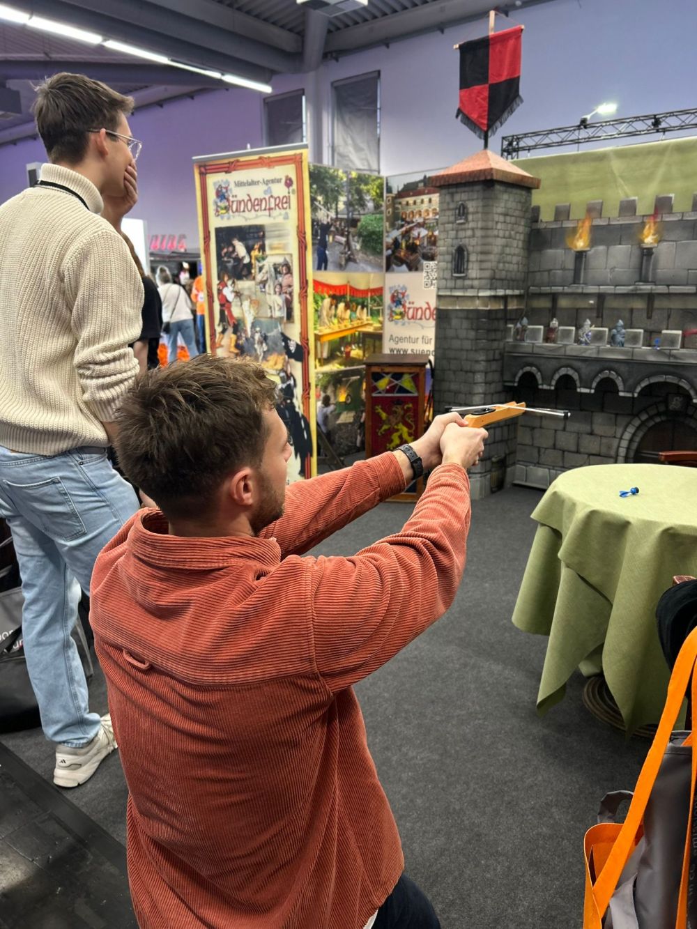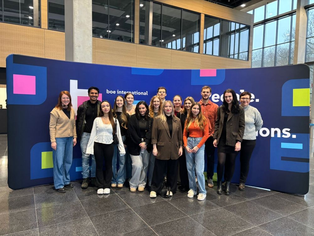 Nach einem gemeinsamen Abendessen und einigen Teambuilding-Aktionen am Anreisetag, stand bereits früh am Morgen des zweiten Tages der Hauptprogrammpunkt der Reise auf dem Plan: die BOE International in den Hallen der Messe Dortmund. Die Best-Of-Events ist eine internationale Fachmesse für alle Facetten des Event- und Veranstaltungsmanagements und präsentierte sich unseren Schülerinnen und Schülern als Plattform, um sich einen umfassenden Einblick in die neuesten Trends und Entwicklungen der Branche zu verschaffen. Die enorme Vielfalt der Aussteller ermöglichte es ihnen, ihre Kenntnisse in den Bereichen Eventmanagement, Veranstaltungstechnik, Marketing und Kommunikation zu vertiefen. Von innovativen Technologien bis zu kreativen Eventkonzepten gab es für jeden etwas zu entdecken. Besonders beeindruckend waren die zahlreichen Live-Demonstrationen und interaktiven Präsentationen, die den Unterrichtsstoff lebendig machten und die Besucher aktiv einbezogen. Die Schülerinnen und Schüler konnten an diesem Tag eine Fülle von Eindrücken sammeln, die nicht nur ihre theoretischen Kenntnisse erweiterten, sondern auch ihre kreativen Denkweisen anregten. Die direkten Gespräche mit Fachleuten der Branche ermöglichten es, Einblicke in die Arbeitswelt zu gewinnen und wertvolle Kontakte zu knüpfen. Das Sammeln der obligatorischen Messe-Goodies rundete den Messebesuch ab.